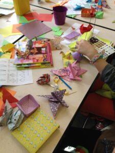 Des collégiens ont découvert l’origami pour faire de belles suspensions pour leur chambre, et les jeunes filles ont aussi confectionné leur parure bijoux.